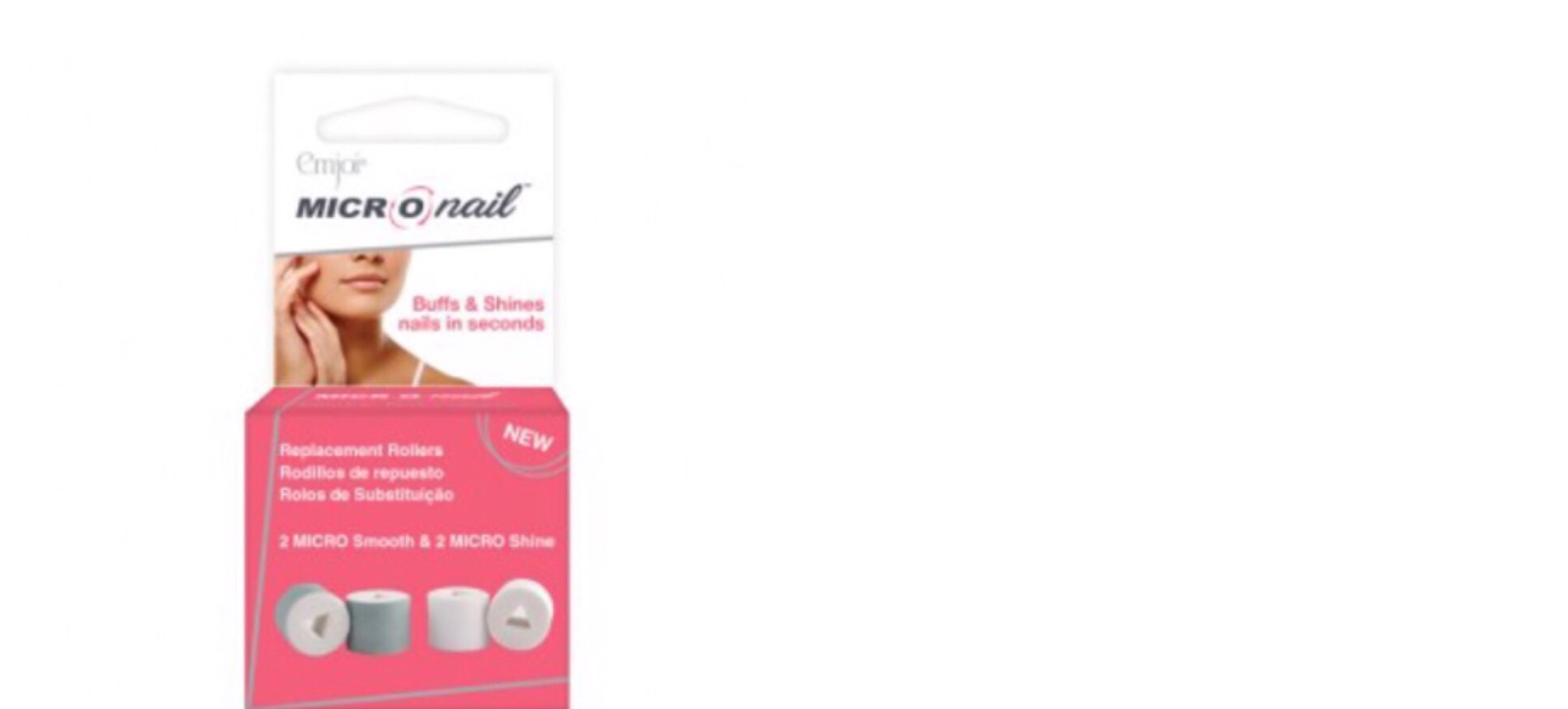 The MICRO Nail also comes equipped with 2 batteries as it is a battery operated product, a replacement smooth and shine roller and a small pouch for storing the smaller pieces. If you feel your rollers have worn down, replacement rollers are available to purchase separately.